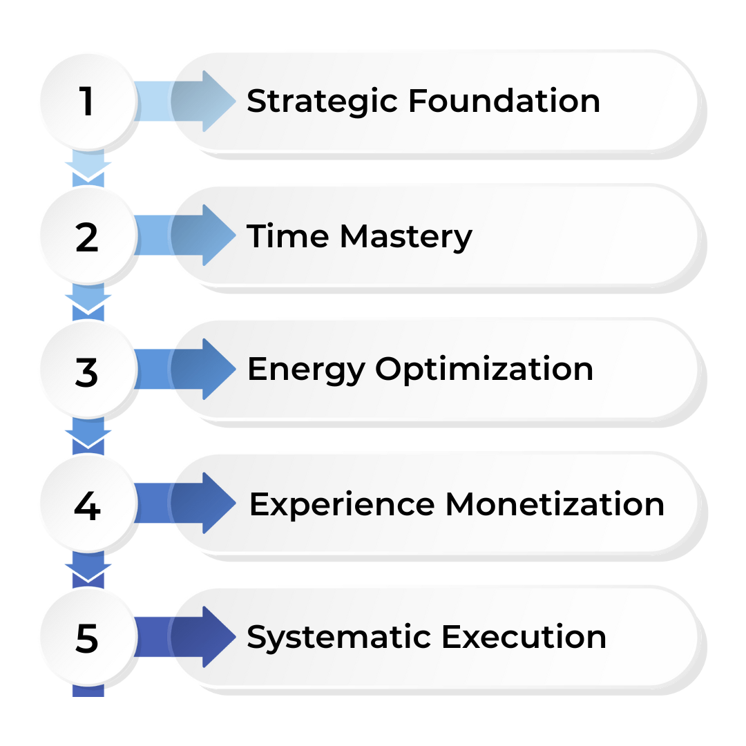 These aren't abstract concepts. They're practical frameworks I've used to build multiple businesses while working full-time, navigating divorce, and maintaining my sanity.